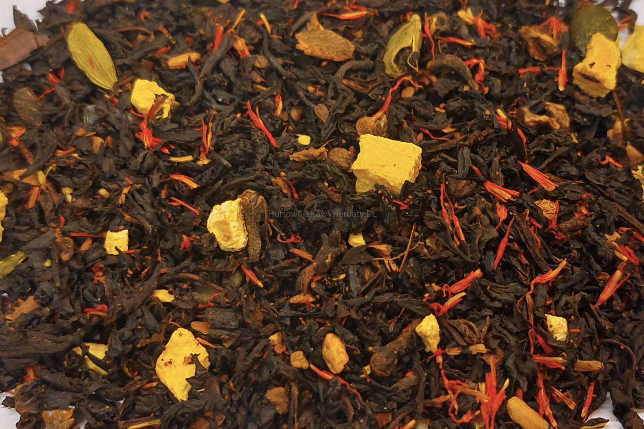 Składniki: herbata czarna Indie OP, pestki dyni, dynia liofilizowana, goździki, cynamon, imbir, pigwowiec owoc, kardamon, gałka muszkatołowa, wanilia, skórka pomarańczy, aromaty, płatki krokosza.